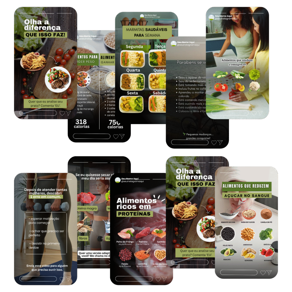 Templates de vídeos curtos, modernos e focados em temas de nutrição, prontos para Canva Gratuito, que o algoritmo ama.